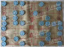 | 復元された西夏象棋。左側が漢字、右側が西夏文字 |