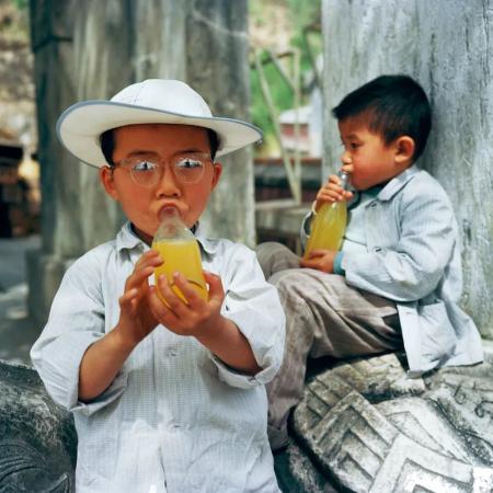 「中国の子供達」には、中国の子供が「中日の子供の友誼に万歳」と書かれた横断幕を持った写真が収録されている。それは、1982年の春に、8歳の子供2人が、「中日友好」をPRするために自ら毛筆で書いた文字だという。
