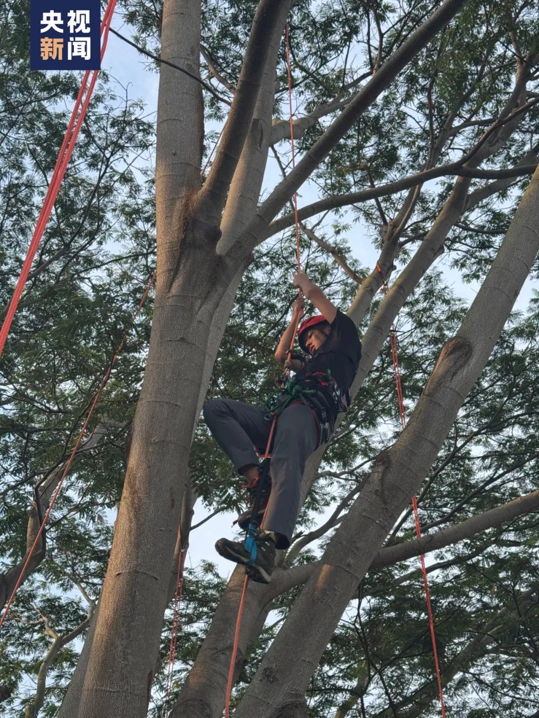 木登りコーチによる専門的な訓練を受けた鄭先生は、中国大陸部で初めて国際樹木協会(ISA)公認のツリーワーカー・クライマースペシャリスト資格を取得したプロの木登りコーチになり、同大初の木登りクラスの講師になった。