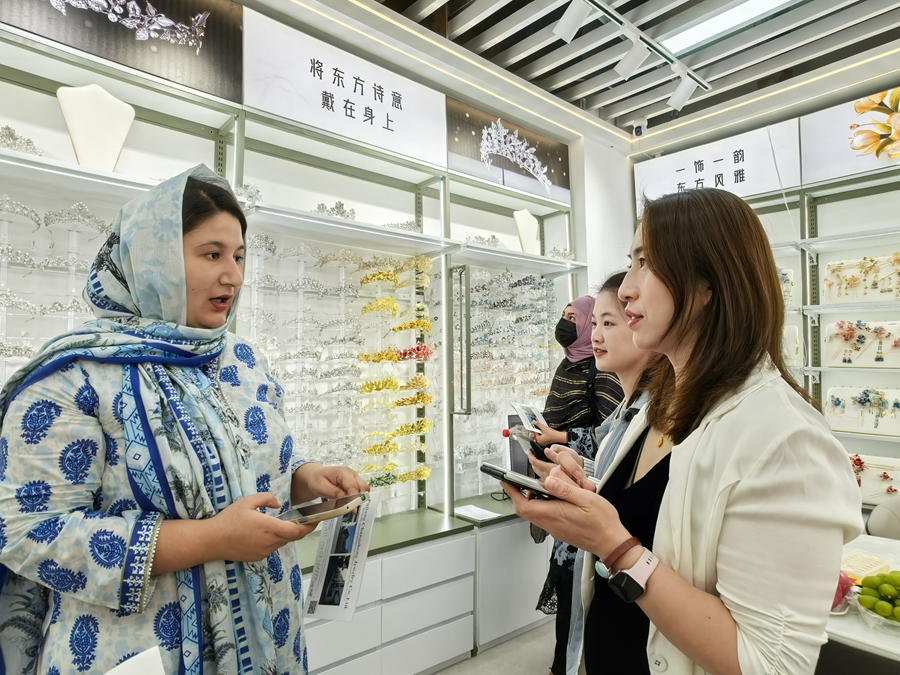 同センターのプロジェクトは2022年に始動し、建築面積は125万平方メートル。新しい貿易、新しい市場、新しいランドマークという3つの主軸を掲げ、「人・モノ・場所・チェーン」という4つの中核要素の高度化を全面的に推進し、市場・オフィスビル・商業エリア・マンション・デジタル貿易港という5つの機能ブロックを展開する。そのうち市場ブロックの建築面積は41万平方メートルに上り、すでにファッションジュエリー、クリエイティブ・トイ、スマート機器など8つの新産業の業者が入居している。そのうち二世経営者や二世起業家、新世代の業者が52%、独自ブランドを所有またはIP商品を扱う業者が57%、新規参入の外部エンティティが約60%を占める。