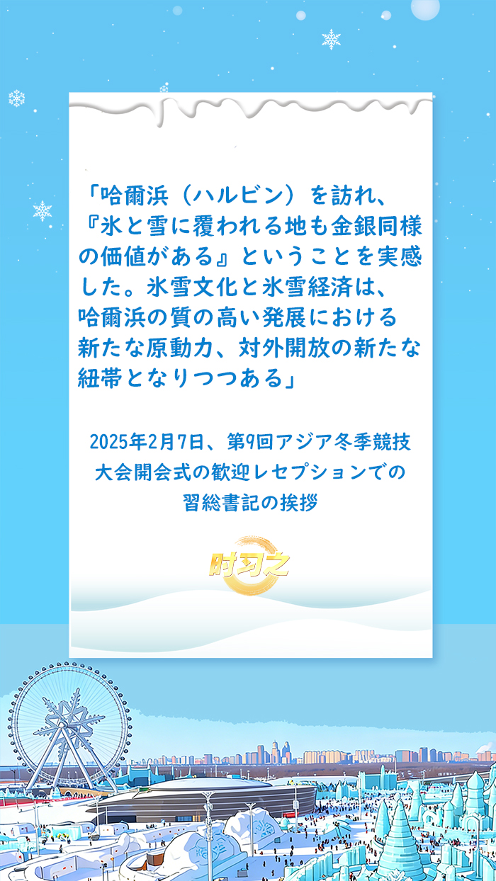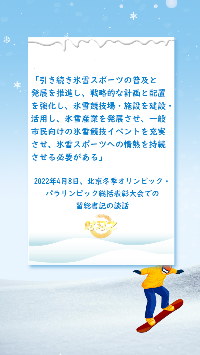 習近平総書記は「氷雪産業は大きな産業であり、『朝陽産業』(朝日が昇るような勢いの新興産業)でもある」と指摘した。