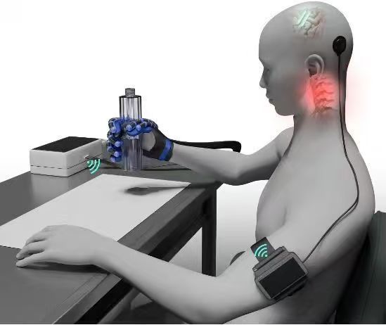 同製品は、患者の頭蓋内にコイン大の低侵襲デバイスを埋め込むことで、脳波信号をリアルタイムで取得・解読し、患者が意思によって外部の空気圧グローブを操作できるようにするものだ。これにより、把持、物の取り上げ、水を飲むといった日常動作を自力で遂行できるようになる。(編集YF)