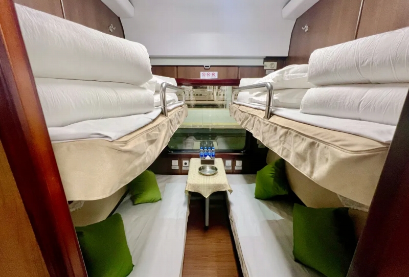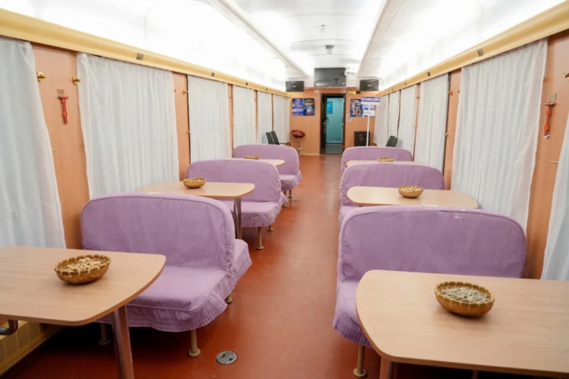 これは、中国鉄路瀋陽局集団有限公司が今冬に入ってから運行した初のハイグレード氷雪ツーリズム列車。静かで快適な旅を楽しんでもらおうと、全5車両が個室の寝台列車となっており、70床が設置されている。また、ダブルルームやツインルームなどが新設されているほか、一部の部屋には独立したトイレやシャワールームもある。