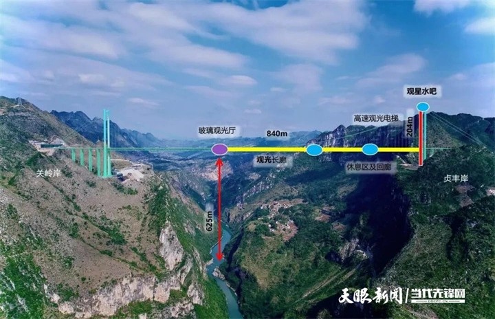 花江峡谷大橋は、黄果樹大瀑布や貞豊古城といった観光地を繋いでおり、「1時間ゴールデン観光圏」を形成している。付属施設の雲渡サービスエリアも車を止めて休憩できる場所から、「観光地」への変化を遂げており、展望台や文化クリエイティブグッズショップ、特色ある飲食、現地の風俗・習慣体験といった機能と業態が勢揃いしている。